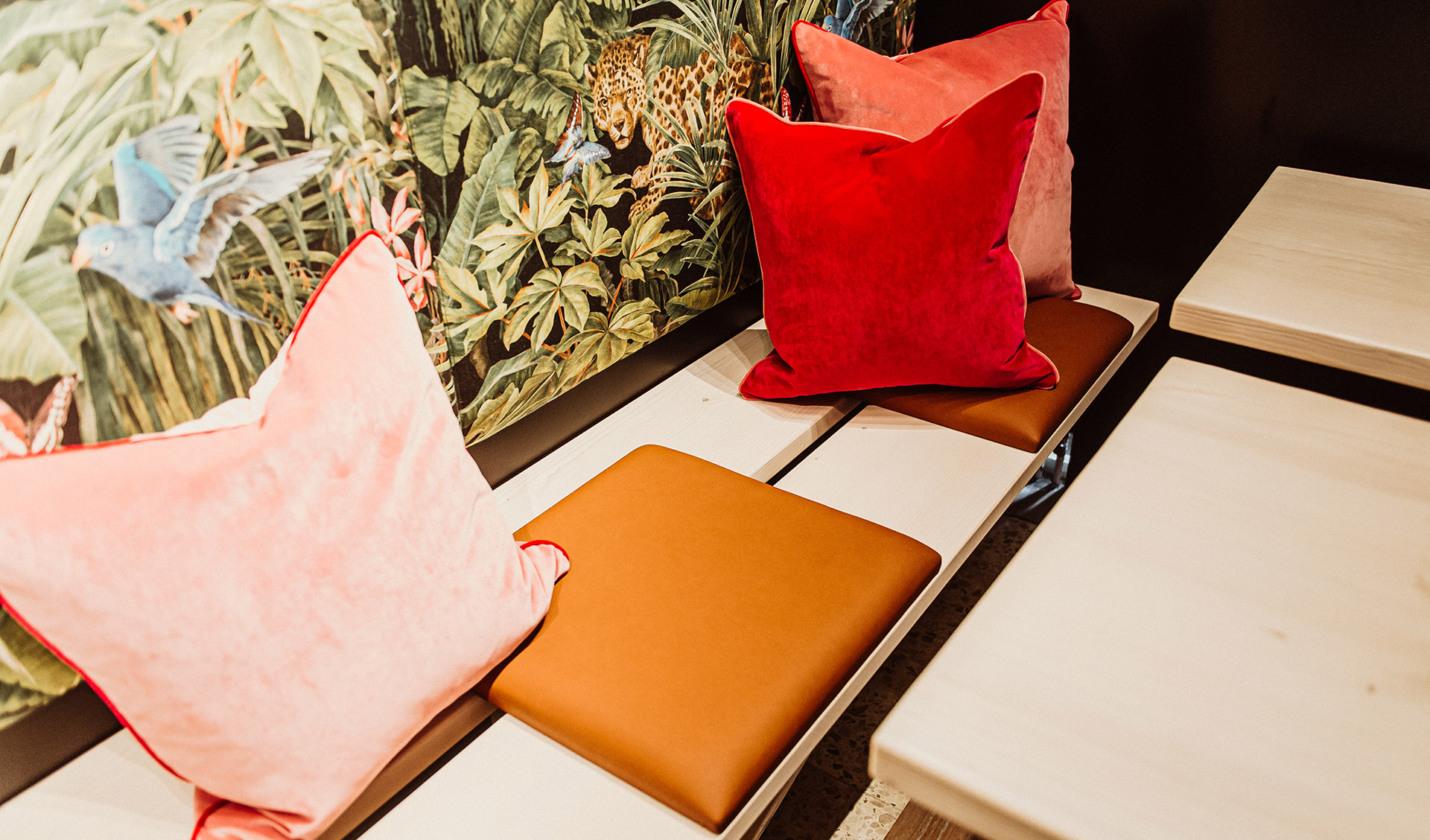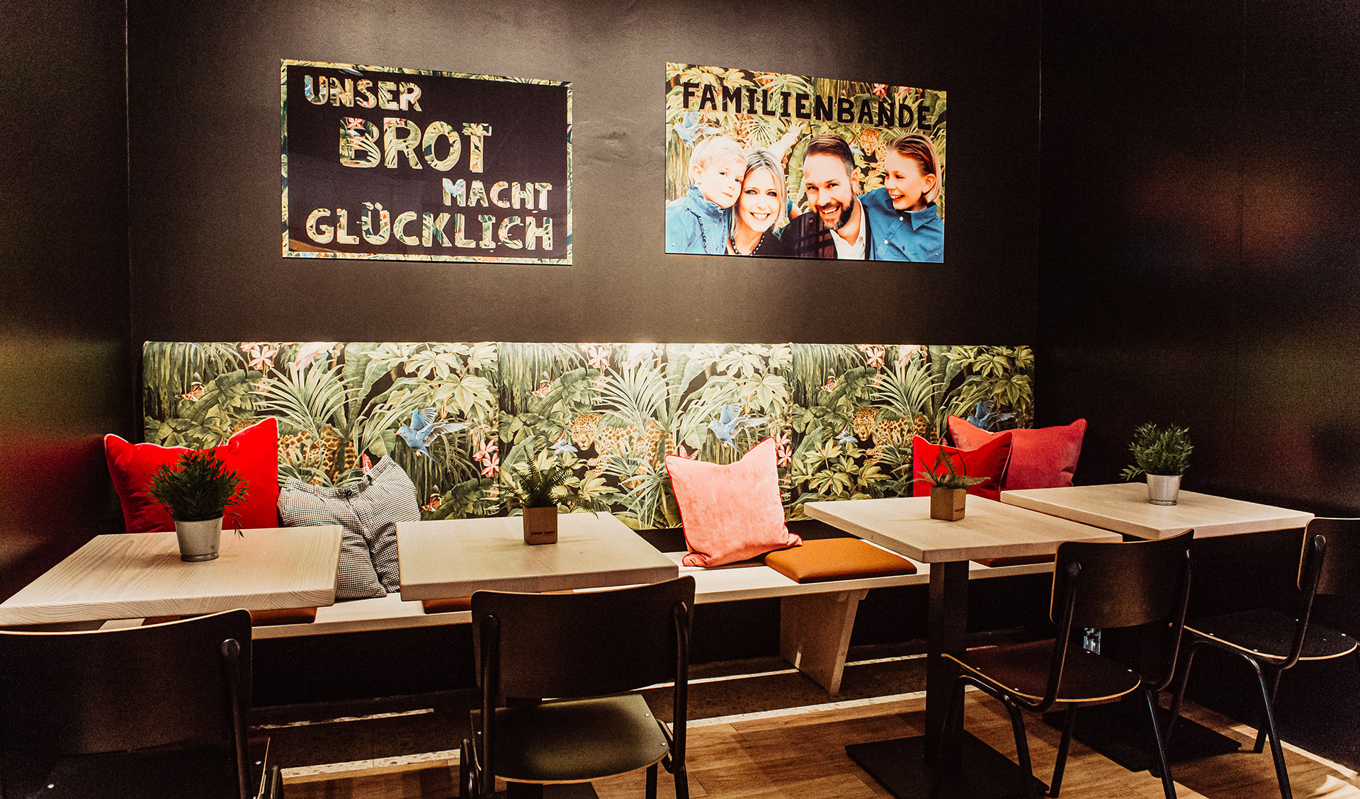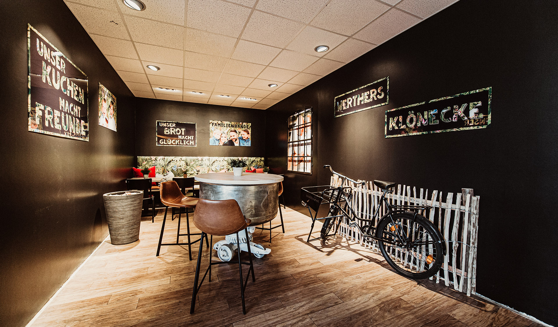 Individuelle Regale und gemütliche Sitznischen nutzen jeden Quadratmeter optimal. Offene Brotpräsentationen und flexible Auslagen für abwechslungsreiche Warenpräsentation.
